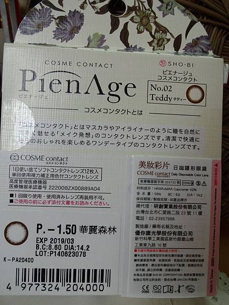 弧度是8.6,DIA 14.20mm,合適我的眼睛,因為是1 day con的關係,con的質地不會太厚,透氣度頗佳的,不會讓眼睛爆紅筋!