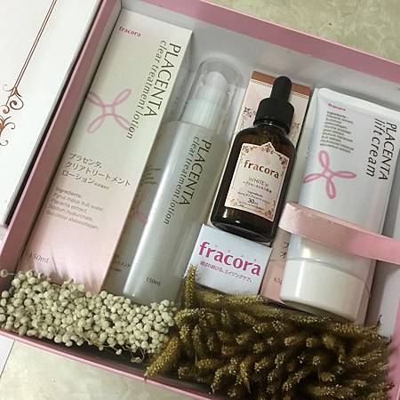 最近收到fracora胎盤素系列的保養品,包裝實在太有「仙氣」了,粉紅色配玫瑰金色,很合適女生!