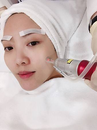 醫生先幫我做皮膚分析,再親自調教儀器,然後治療師幫我清潔皮膚,之後就開始laser治療。